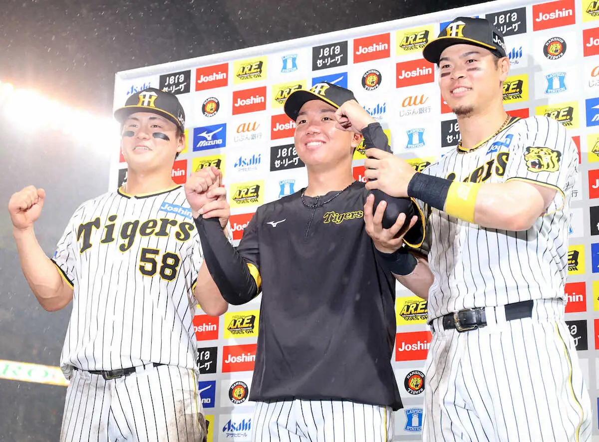 佐藤輝は7回の2点適時打の後、投手交代で一度、ベンチに引き揚げた際、村上のお尻をポンと叩いた。借りを一つ返したという合図だろう。村上が抑えて佐藤輝が打つ。そんな同期の絆が、この先も発揮されれば、虎は確実に強くなる。(阪神担当・倉世古 洋平)