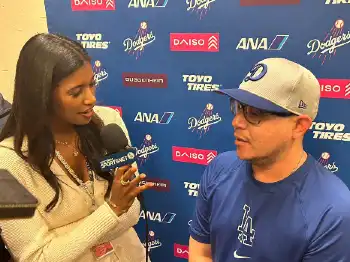 大勢の報道陣に囲まれるドジャースのバットボーイ・ヘレラさん(撮影・柳原 直之) Photo by スポニチ 大谷翔平を救ったバットボーイが一躍人気者に「翔平からはサンキューと言… ギャラリーで見る この記事のフォト 2024年06月29日の画像一覧 もっと見る 2024年06月29日の画像をもっと見る