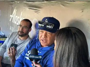 ジャイアンツ戦前に取材に応じるドジャース・ロバーツ監督(撮影・柳原 直之) Photo by スポニチ ド軍指揮官 大谷翔平を痛烈ファウルボールから救ったバットボーイの昇給… ギャラリーで見る この記事のフォト 2024年06月29日の画像一覧 もっと見る 2024年06月29日の画像をもっと見る