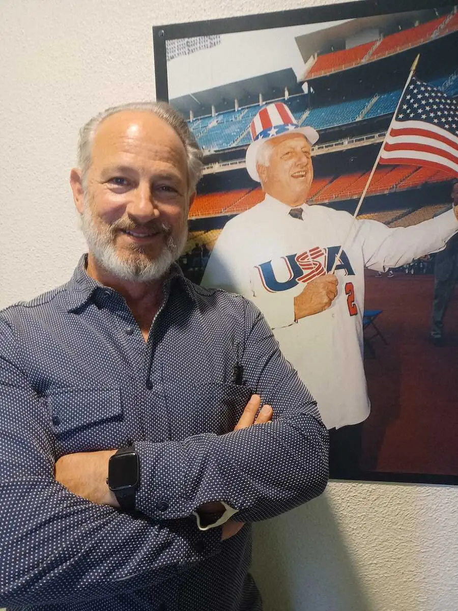 ドジャースタジアムの場内アナウンサー、トッド・ライツさん(撮影・奥田 秀樹通信員)