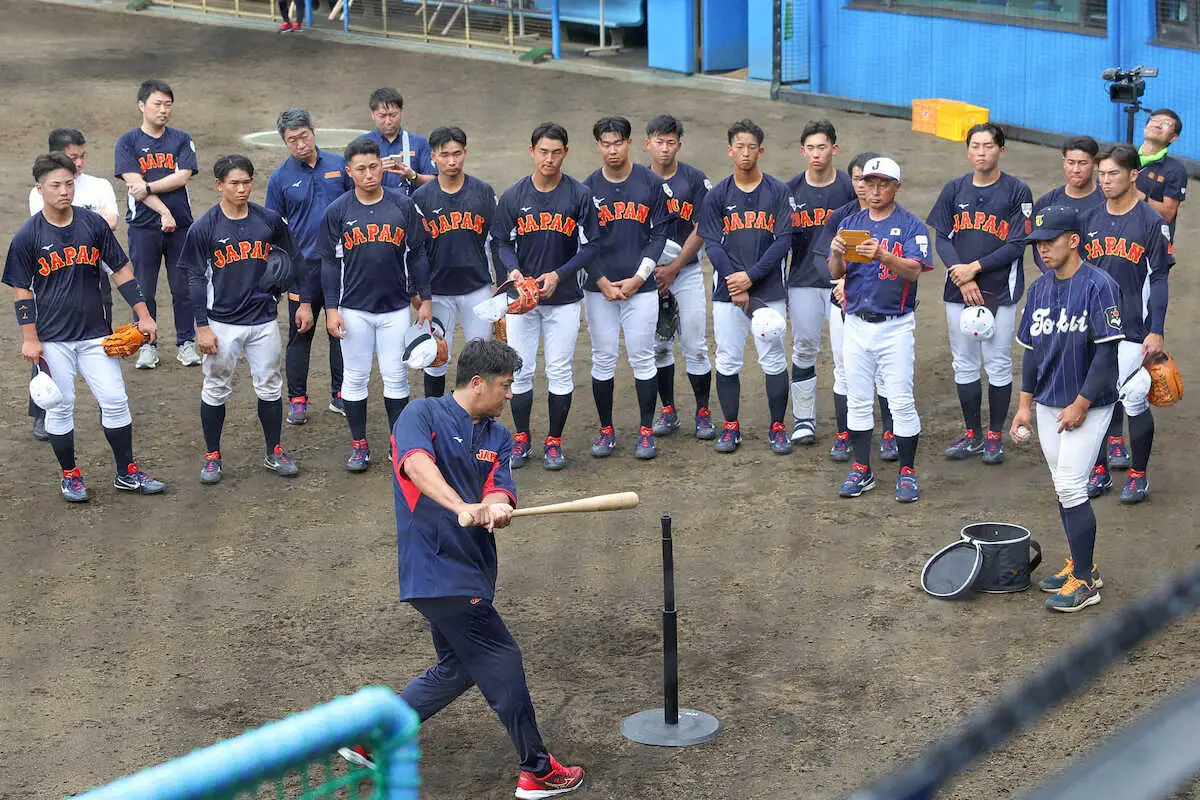 第43回プラハベースボールウイーク(7月6~9日)と第31回ハーレムベースボールウイーク(同12~19日)に出場する侍ジャパン大学日本代表合宿第2日が行われた。この日から慶大OBの高橋由伸元巨人監督(49)が臨時コーチとして参加。メンバーの早大・印出太一捕手(4年=中京大中京)、同・吉納翼外野手(東邦)、今秋ドラフト上位候補の青学大・西川史礁外野手(4年・龍谷大平安)らに打撃理論を指導した。