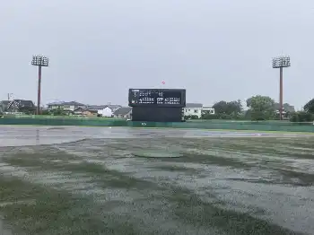 久留米球場で行われた福岡大会の福岡―純真は福岡が7点リードの6回途中に雨脚が強まった影響で中断。41分後に継続試合が決まった。