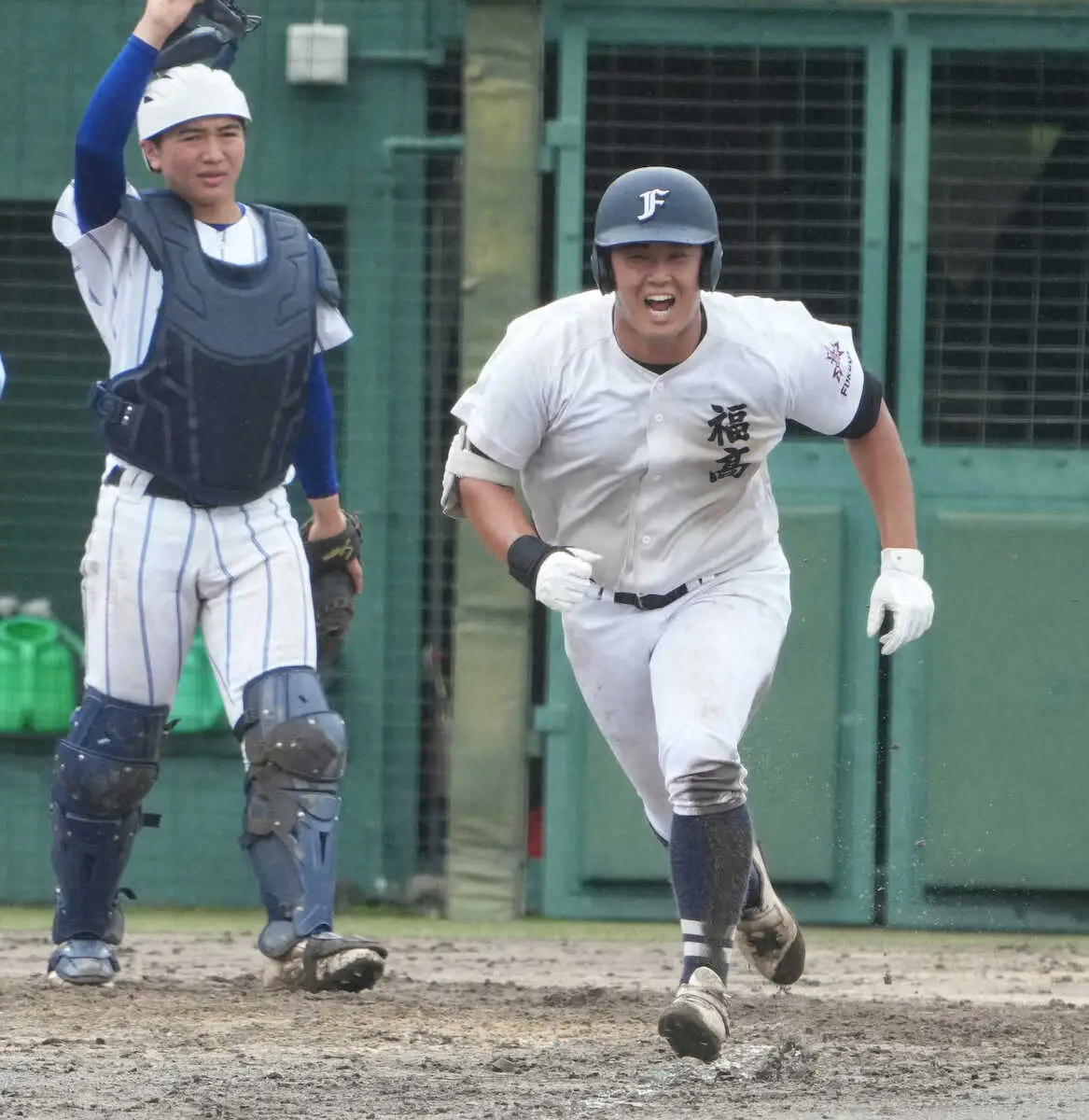 福岡の先発は井崎暁志郎投手(3年)だった。1メートル78、96キロの恵まれた体格から130キロ後半の直球やスライダーをテンポよく投げ込んだ。強い雨が降り続ける回もある難しいコンディションの中で5回2安打1失点の好投だった。「試合の入りは良かった。濡れて投げづらくてズボンもびちょびちょだったので、めちゃくちゃ投げづらかった」と振り返った。