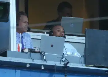 左手骨折で離脱中のドジャースのムーキー・ベッツ内野手(31)が3日(日本時間4日)、本拠ドジャースタジアムでのダイヤモンドバックス戦で放送席に座った。