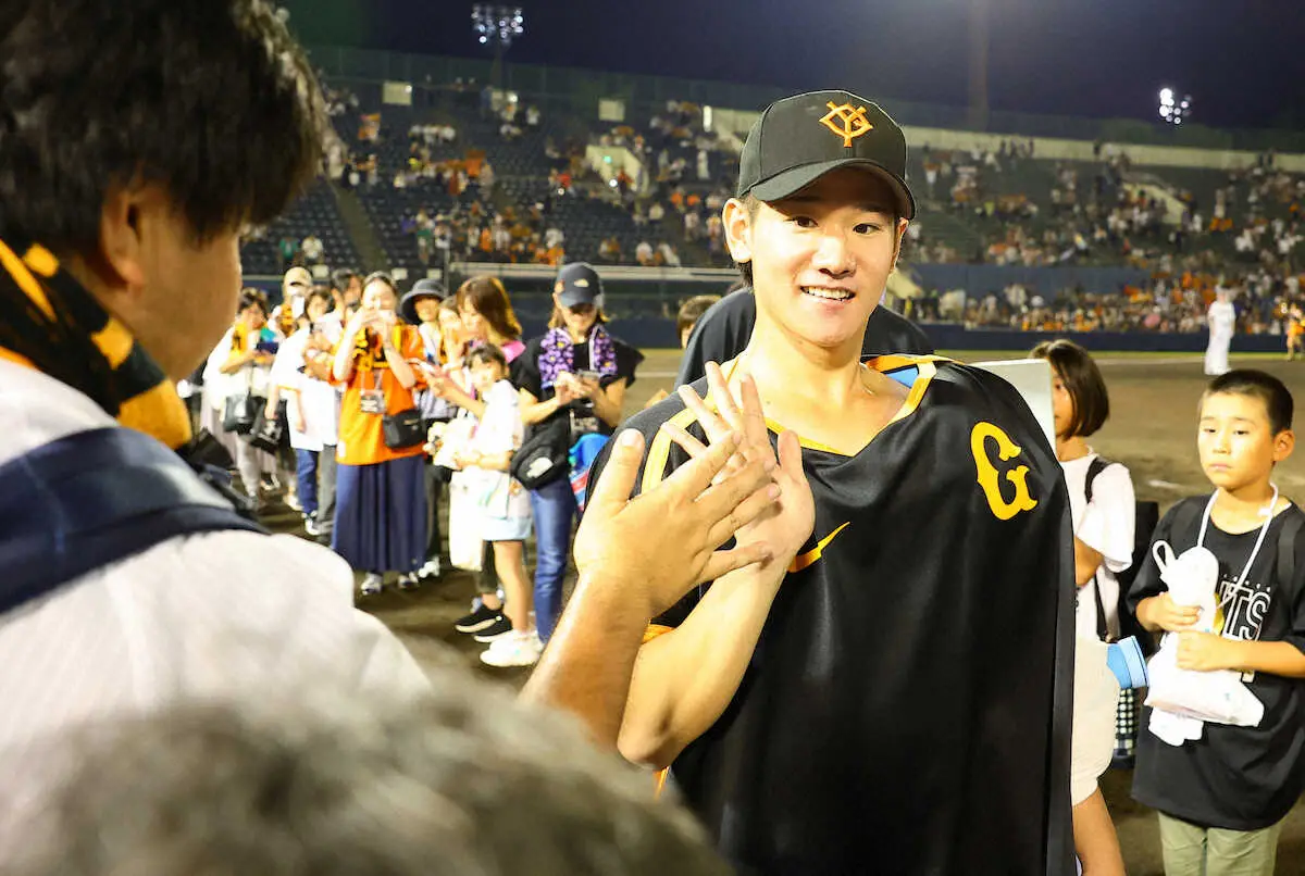 6年前は上毛新聞敷島球場の外で飛んでくるかも分からないファウルボールを待った。その高校生は汗と涙を流しながら成長を続け、巨人のユニホームを着てマウンドに立った。井上が自己最長の8回を投げ、5安打無失点で3勝目。お立ち台で地元への感謝を語った。