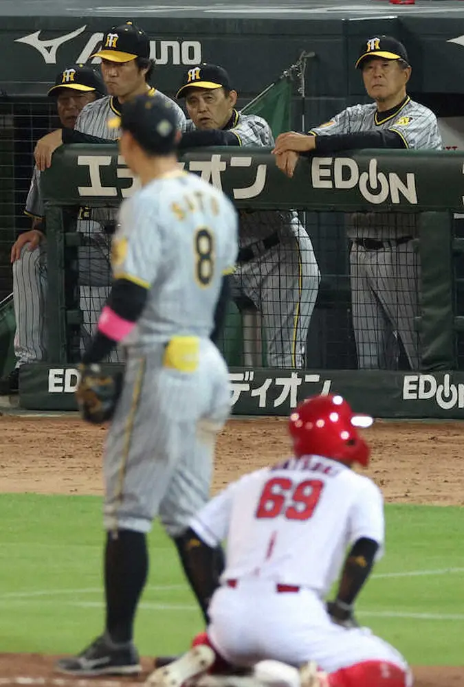 そこから2死満塁までピンチを拡大し、堂林への初球の暴投で決勝点を献上。ここから歯止めが利かず、2安打でさらに3点を追加された。岡田監督は、梅野を含めたバッテリーの不用意さに、怒りを隠さなかった。