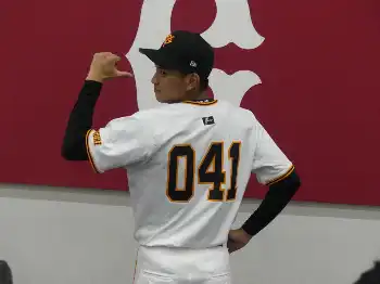 真新しい背番号「041」のユニホームを着た台湾出身の左腕は「1軍を目指して、1軍の戦力になれるように一生懸命努力してきたい」と初々しく所信表明。