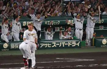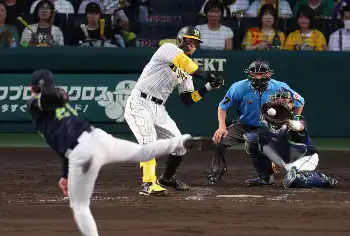 阪神・野口 プロ初スタメンで奥川撃ちの同点打 佐藤輝が蝶ポーズでベンチから祝福