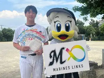 ロッテ・田中晴がマリーンズ算数ドリル贈呈式に出席 児童からプロ1勝祝福され笑顔