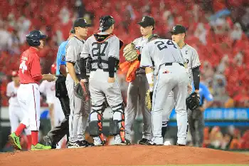 試合前からの降雨が途中で激しくなり、1―1の4回表、巨人攻撃中に中断。結局そのまま再開されず、ノーゲームとなった。