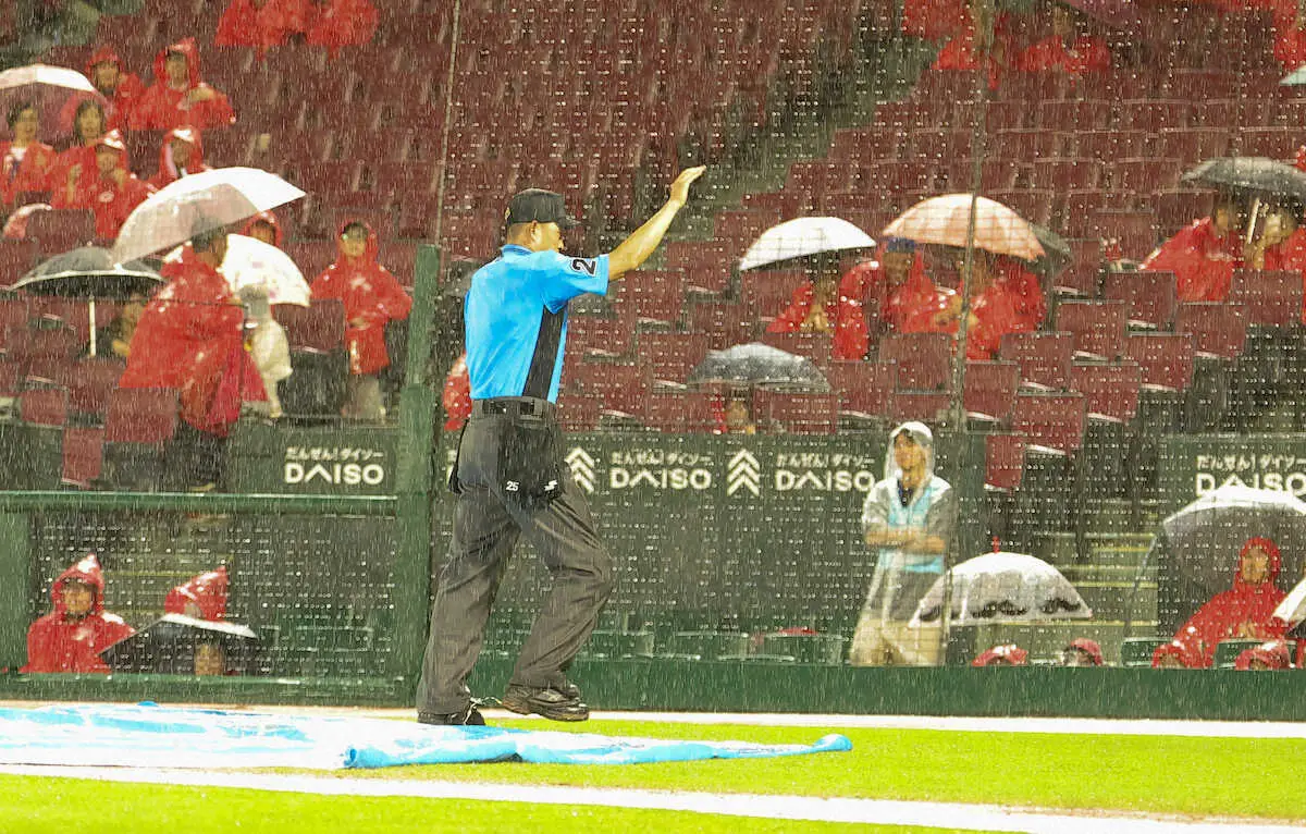 <広・巨>4回途中、悪天候のため中止となる(撮影・藤山 由理)