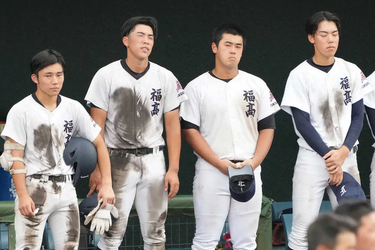 県内屈指の進学校・福岡はソフトバンク育成3年目の井崎燦志郎の弟でエースの暁志郎が8回4失点で完投したが、守備のミスが響いて2―4で4回戦敗退した。