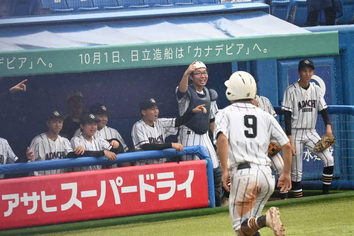 「ノーサイン野球」を掲げる足立学園が雨にも負けず、12安打15得点で高輪を撃破した。得意の走塁でも7盗塁。19年以来5年ぶりの夏2勝へ向け、まずは好発進を決めた。