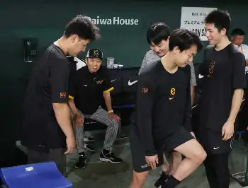 23、24日の「マイナビオールスターゲーム2024」に監督選抜で出場する山崎伊織投手(25)、丸佳浩外野手(35)らが、阪神の試合前練習中に全セの指揮を執る阪神・岡田彰布監督(66)へあいさつに訪れた。