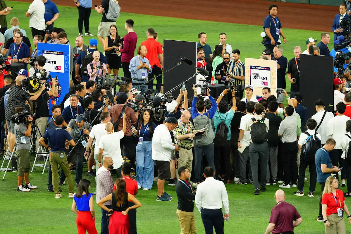 <MLBオールスター・前日>ドジャースの面々と笑顔を見せる大谷(撮影・西尾 大助) Photo by スポニチ 【大谷翔平と一問一答①】対戦したい投手は「全員素晴らしい投手」本塁打競… ギャラリーで見る この記事のフォト 2024年07月16日の画像一覧 もっと見る 2024年07月16日の画像をもっと見る