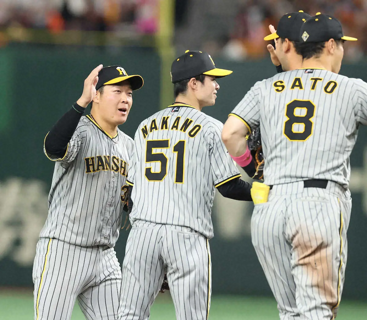 《輝は激走ホームイン》佐藤輝は4回2死三塁でフルカウントから四球を選び、大山の先制二塁打では一塁から一気に生還した。「(藤本三塁ベースコーチが)回していたのでね。そのつもりで最初から走ってました」と激走を振り返り、岡田監督にも「2点目が大きかった」とたたえられた。帰途では巨人―阪神のOB戦で球場入りした先輩たちとすれ違う場面もあり、「頑張って…頑張ってと言うのはおかしいですけど、けがなく、安全が一番です」と“エール”を送った。