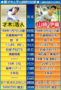 阪神・才木と巨人・山崎伊の比較表 Photo by スポニチ 阪神・才木 巨人先発の山崎伊と激アツ投手戦「疲労感的にも全然まだいけ… ギャラリーで見る この記事のフォト 2024年07月17日の画像一覧 もっと見る 2024年07月17日の画像をもっと見る