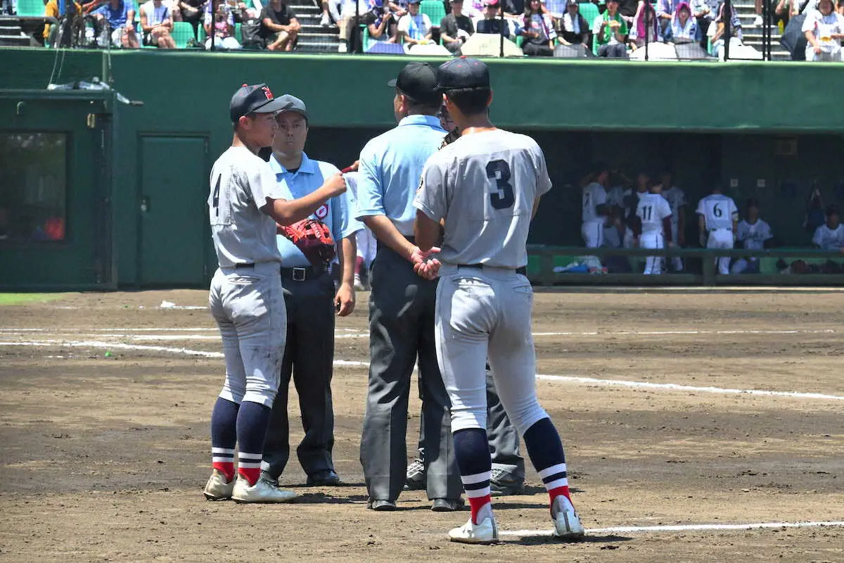 もう選手がやるせない涙を流すのは見たくない。だから村田監督は一歩も引かなかった。3―1で迎えた6回の守備で1死一、三塁からゴロを捕球した二塁手が一塁走者と衝突。判定はタッチアウトのみで三塁走者が生還した。衝突がなければ併殺を狙えるタイミングだっただけに指揮官は守備妨害をアピール。審判団に8度も伝令で確認した。