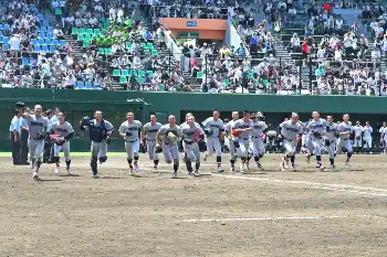 確認を重ねて納得した村田監督は、暑さを避けるためにベンチに下がっていたナインに熱く声をかけた。「勝つしかない!」。リードは1点。直後に中堅への鋭いライナーが飛んだが、2年生主将の阿部葉太が執念のダイビングキャッチで3アウト目をつかみ取った。
