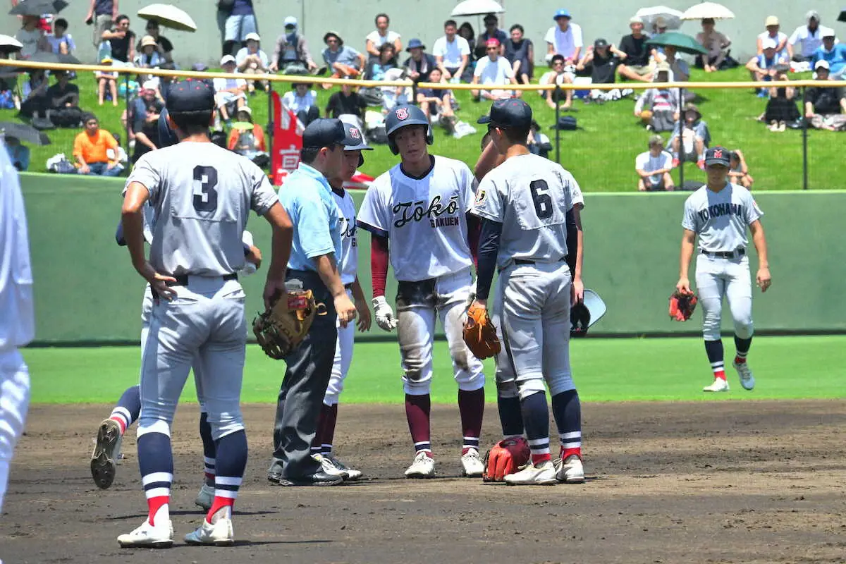 第106回全国高校野球選手権(8月7日開幕、甲子園)の出場校を決める地方大会は20日、39大会で191試合(継続試合を含む)が行われ、神奈川大会の準々決勝では横浜が桐光学園を9―2で下し準決勝に駒を進めた。6回1死一、三塁で二塁手と一塁走者が交錯して併殺を取れずに失点した場面で、村田浩明監督(38)は8度も審判団に伝令を出して守備妨害をアピール。認められなかったが、直後の攻撃で一挙6点を奪い試合を決めた。