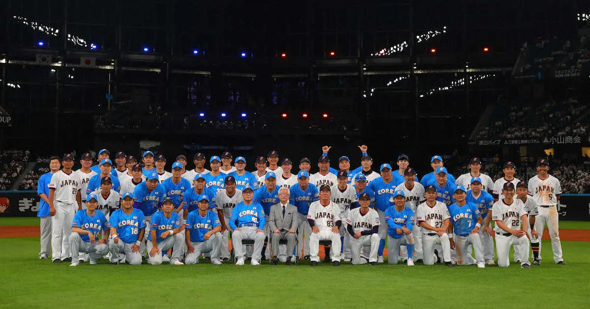 日本と韓国のレジェンド選手たちによる「日韓ドリームプレーヤーズゲーム」が22日、エスコンFで行われ、日本が韓国に逆転勝ち。試合後にエスコンFの大型ビジョンに流れた日本語と韓国語のメッセージが話題を呼んだ。
