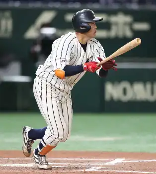 【球宴】赤いスーツに”近本打法”でヒット…初出場でインパクト十分の楽天・辰己「言うことないです」