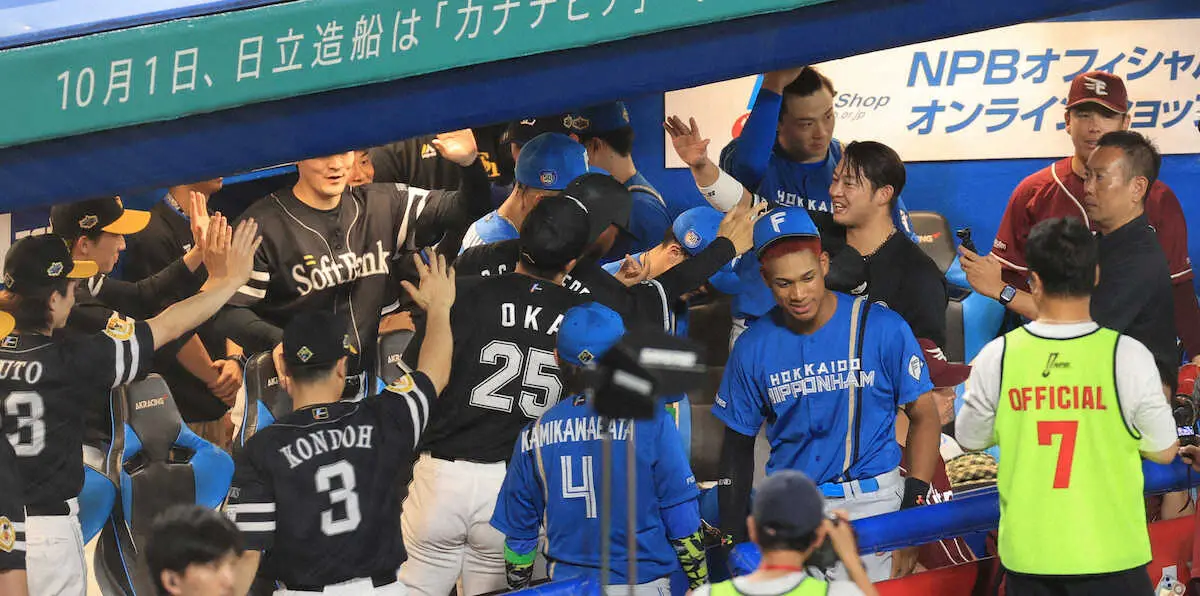 オールスター<全セ・全パ>9回、この日5安打目を放った佐藤を全パがベンチ総出で迎える(撮影・篠原岳夫) Photo by スポニチ 【球宴】歴史的打ち合いを制したのは全パ!数々の記録を更新、28安打16点… ギャラリーで見る この記事のフォト 2024年07月24日の画像一覧 もっと見る 2024年07月24日の画像をもっと見る