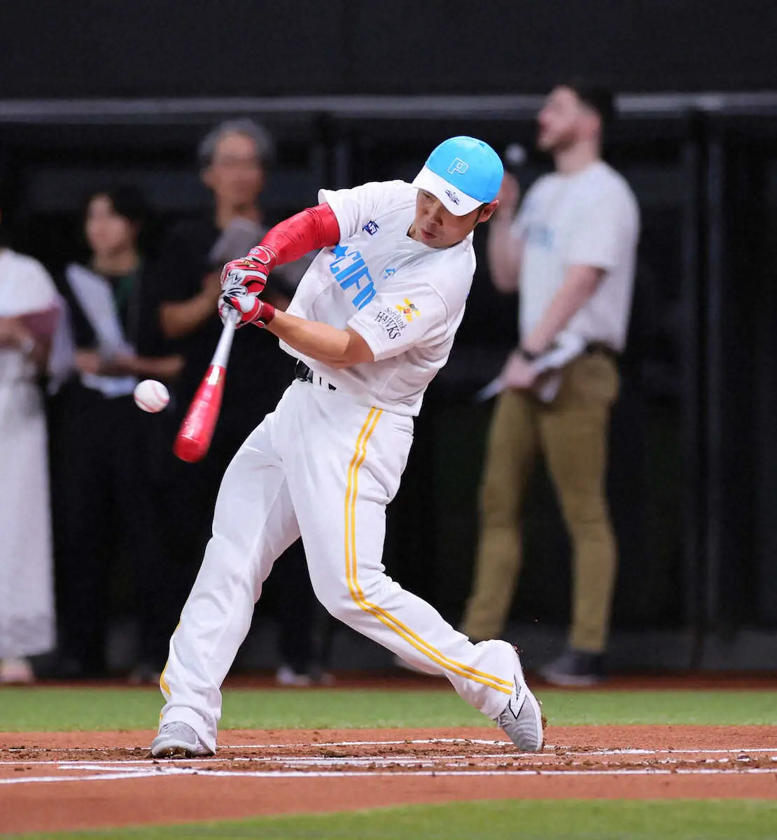 先に登場した近藤。23日のホームランダービーでは、牧(DeNA)と岡本和(巨人)を撃破し決勝に駒を進めた。リズムよいスイングで軽々とスタンドにボールを運び、計8本を記録した。