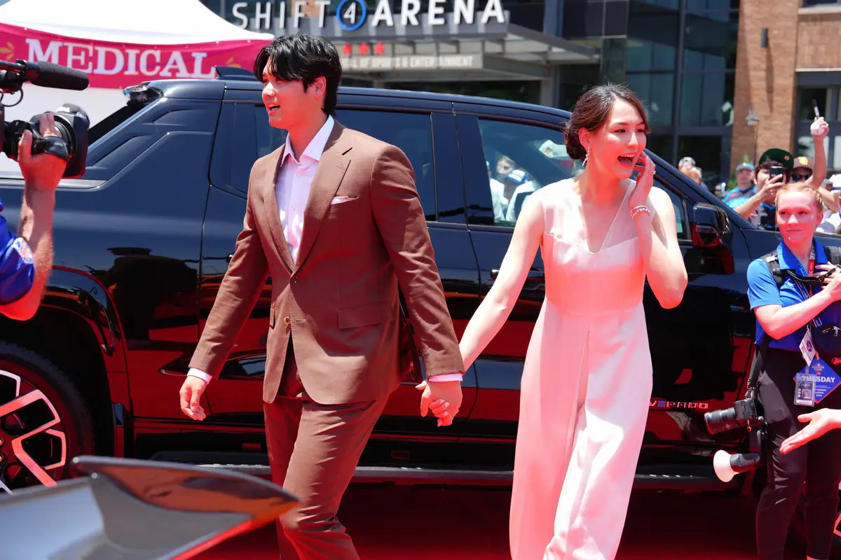 この日は女性を主役にという趣旨の「ウィメンズ・ナイト」。各選手の登場曲はパートナーが選曲。真美子夫人が選んだのは、アニメで主人公が敵を倒す時に流れる「勝利確定曲」、「処刑曲」とも呼ばれる「魔曲」だった。試合前には球団公式SNSが選手に「好きな女性アスリート」を質問する映像を公開。各選手がテニスのセリーナ・ウィリアムズらを挙げる中、大谷は「My wife」と即答。1メートル80の元バスケットボール選手の愛妻を、迷うことなく選んだ。