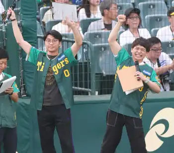 阪神 試合前にお笑いコンビ・さや香が登場 新山は見せ算“自虐ユニ”で登場「最終決戦で…」