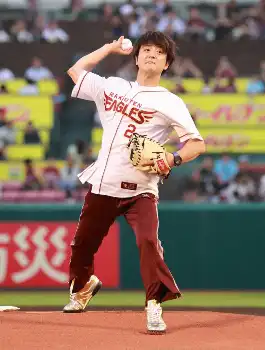 俳優の上地雄輔が楽天―ロッテ戦の始球式に登場。横浜高校で松坂大輔氏とバッテリーを組んだ男が力強い投球
