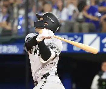 すると、相手先発右腕・ジャクソンに対して初球の152キロ直球をファウルしたあとの2球目、真ん中付近にきた153キロ直球を見逃さずに右翼線へ運んで二塁打とした。