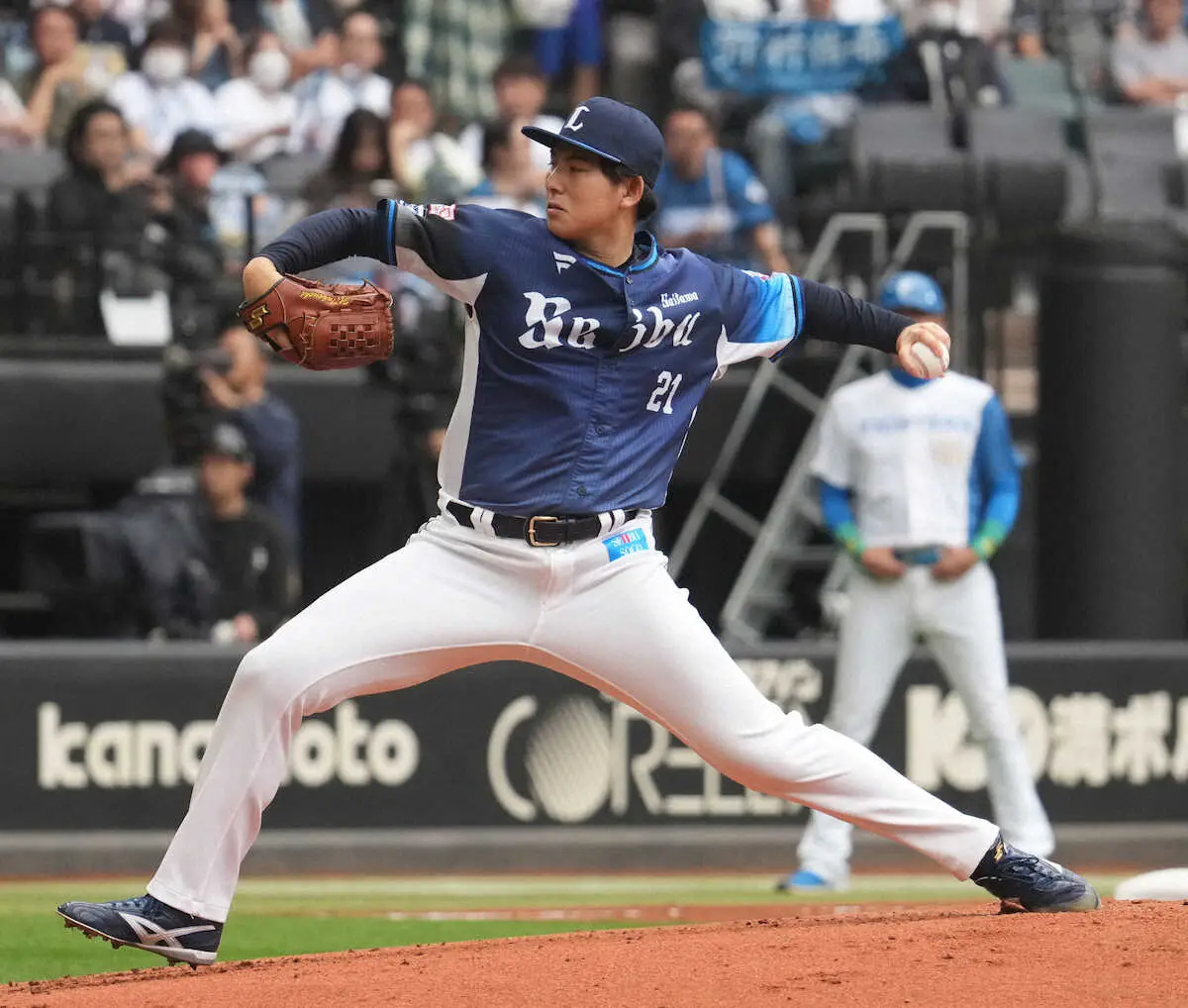 エスコンフィールド初登板で屋根が開放され、ホームからの風を受けるマウンド上。風の抵抗で落ち球が落ちやすいが「打者2巡目から対応できた」と変化量を調整した。3―0の6回は先頭・万波に二塁打を浴るも「ギアを上げた」とレイエスをチェンジアップで、マルティネスを直球で連続三振。最後は野村を一邪飛に斬って流れを渡さなかった。