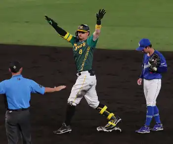 阪神・野口が鬼肩発動! 木浪との好連係で勝ち越しタッチアップ狙った龍空を刺す