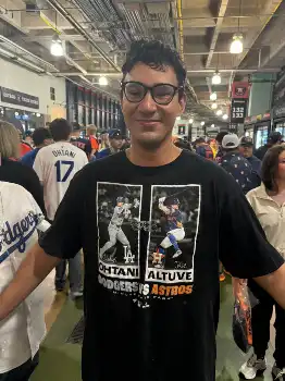 ドジャース・大谷とアストロズ・アルテューベの記念Tシャツを購入したラミレスさん(撮影・奥田 秀樹通信員) Photo by スポニチ 大谷翔平 アストロズ本拠で敵軍では初のコラボグッズ販売 アルテューベ… ギャラリーで見る この記事のフォト 2024年07月28日の画像一覧 もっと見る 2024年07月28日の画像をもっと見る