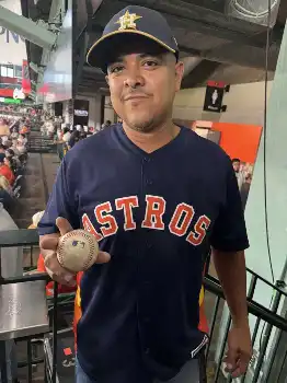 ≪32号キャッチのアストロズファン 野球好き息子にプレゼント≫右翼席最上部の階段付近で32号をゲットしたのは、ヒューストンで電気技師として働くアンソニー・スータイタさん(38、写真)だった。「正直打球が速くて怖かった。ボールが通り過ぎる時に風を感じたよ」。背後にある壁に跳ね返り、最後は階段をかけ下りてつかみ取った。アストロズのファンだが「気分は良い。2人の息子は野球が好きだから、どちらかにプレゼントするつもり」と語った。