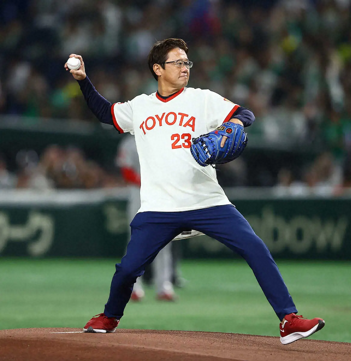 トヨタ自動車時代に着用していた背番号「23」のユニホームを身にまとい、手にはキャッチャーミット。マウンドに立ち、見事なストライクを投じた。「今日はストライクが入ってよかったよ」。