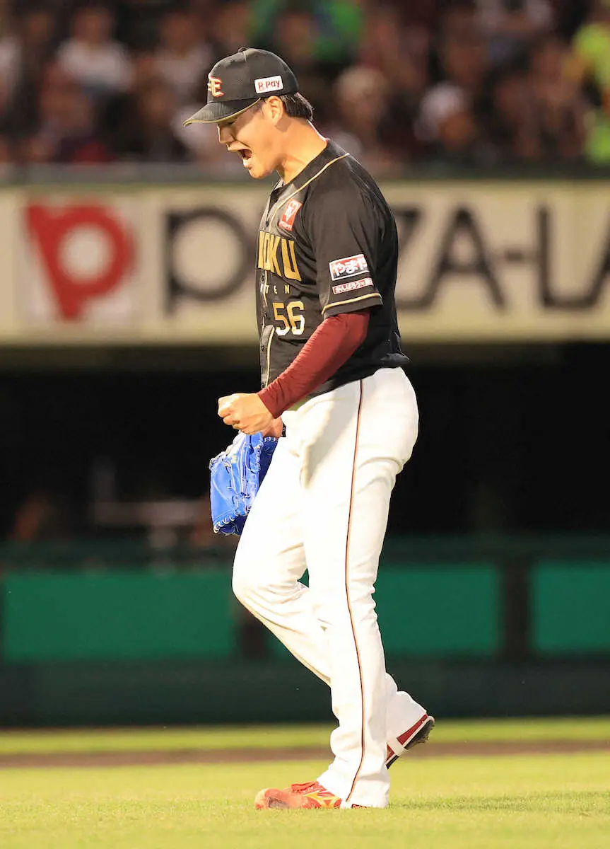 <楽・ソ>8回は3番手鈴木翔が3人で抑え吠える(撮影・篠原岳夫)