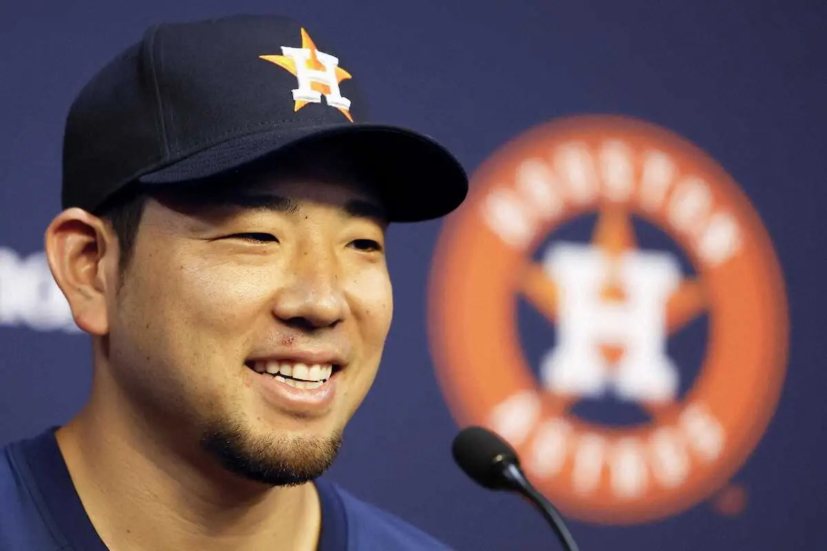 ブルージェイズからアストロズにトレードで加入した菊池が本拠地ヒューストンで入団記者会見に臨み「優勝を狙えるチーム。長いシーズンにしたい」と抱負を述べた。
