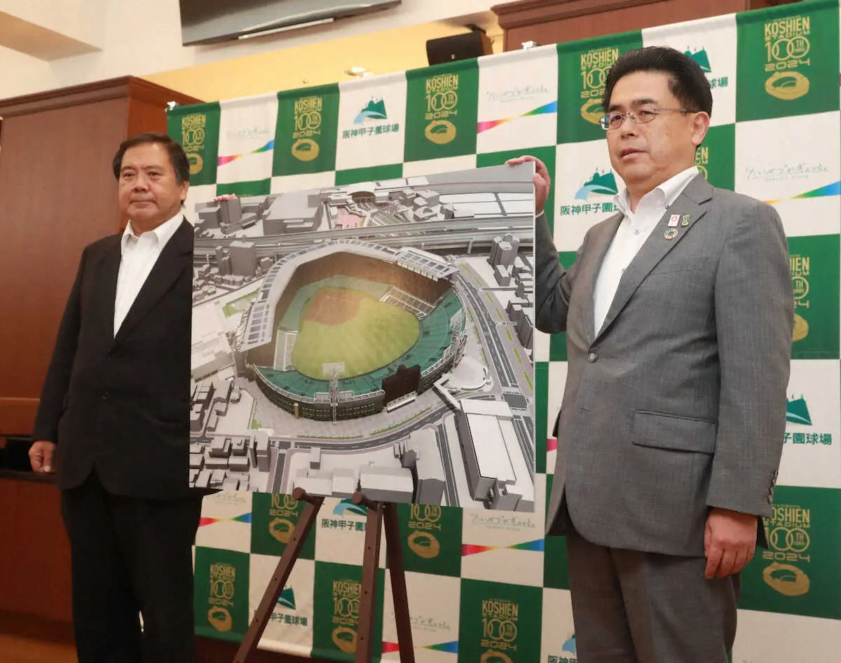 阪神電鉄は2日、兵庫県西宮市内で記者会見を開き、昨年7月に発表した甲子園球場の銀傘拡張に関する計画内容を発表した。