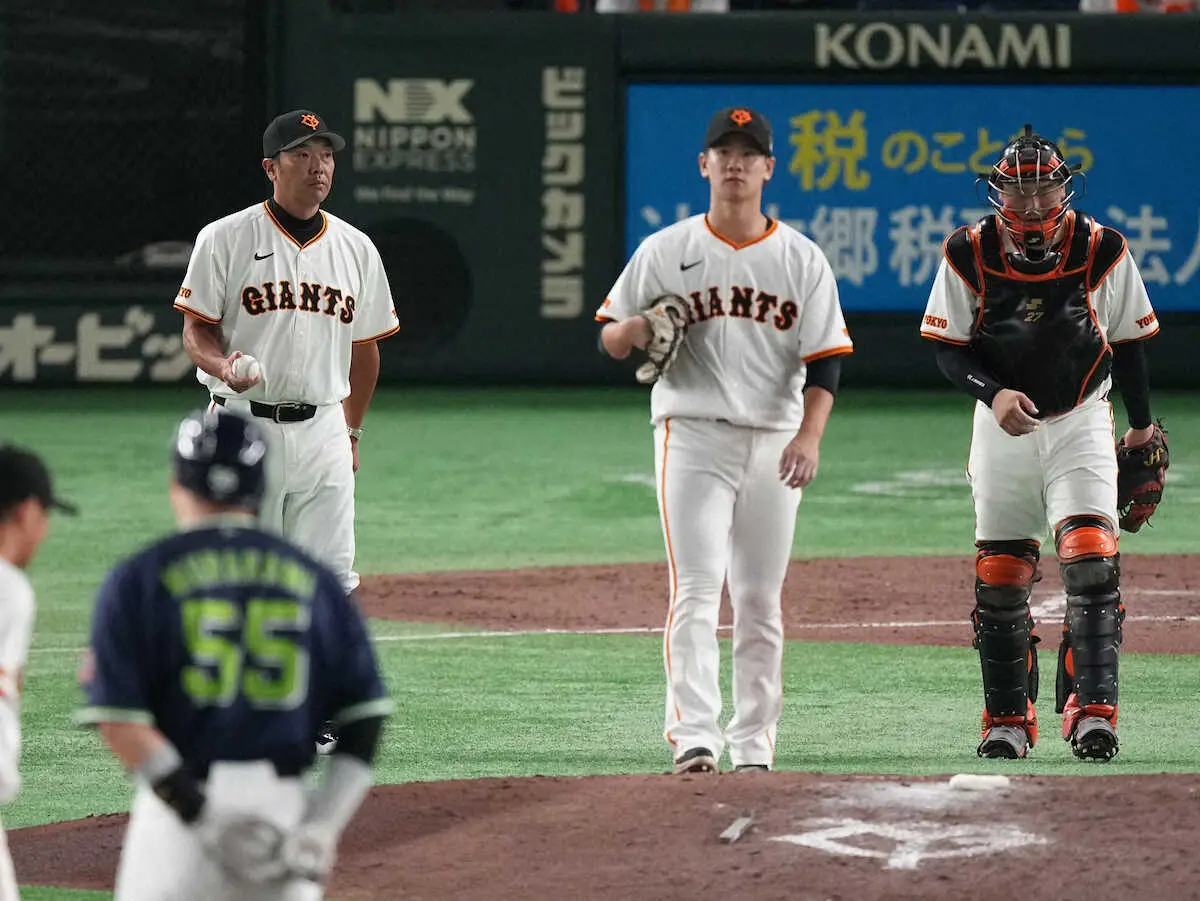 だが、初回に2死から山田を四球で塁に出してから村上に20号2ランを浴びて先制され、その後、試合をひっくり返してもらいながら勝利投手の権利を得るまであと1死となった5回に連続四球から失点して降板した先発左腕・井上について話が及ぶと「いや、ひどいですよね、うん。その一言です、はい」と厳しい表情で言い切った。
