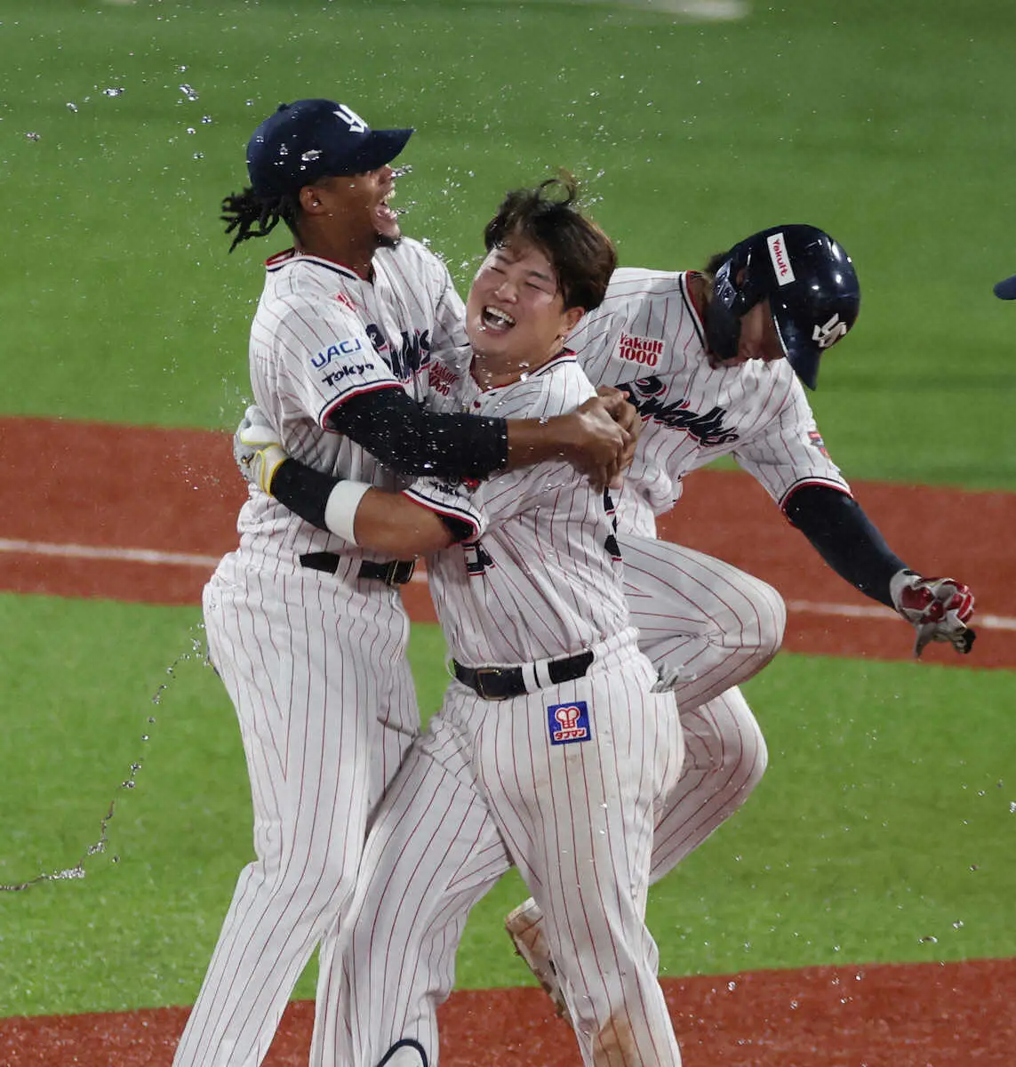 最後は主砲が決めた。ヤクルトが劇的なサヨナラ勝ちで“勝負の9連戦”は白星発進となった。4―4の9回2死一、二塁、4番・村上が中前サヨナラ打。連敗を2で止めて歓喜の輪の中心でウオーターシャワーを浴び「本当に最高です。チーム一丸で点を取れた」と声を弾ませた。