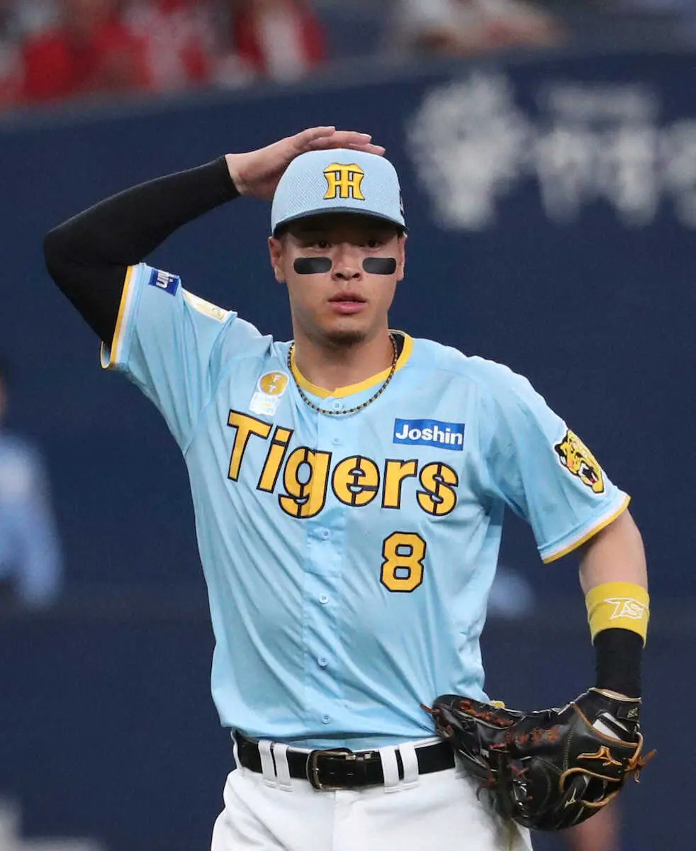 <神・広>2回2死一、二塁、佐藤輝(左)の悪送球で先制を許してぼう然とする村上(中央)(撮影・北條 貴史) Photo by スポニチ 阪神は首位広島とのカード初戦を落とし3ゲーム差に広がる 先発村上は5回4… ギャラリーで見る この記事のフォト 2024年08月09日の画像一覧 もっと見る 2024年08月09日の画像をもっと見る