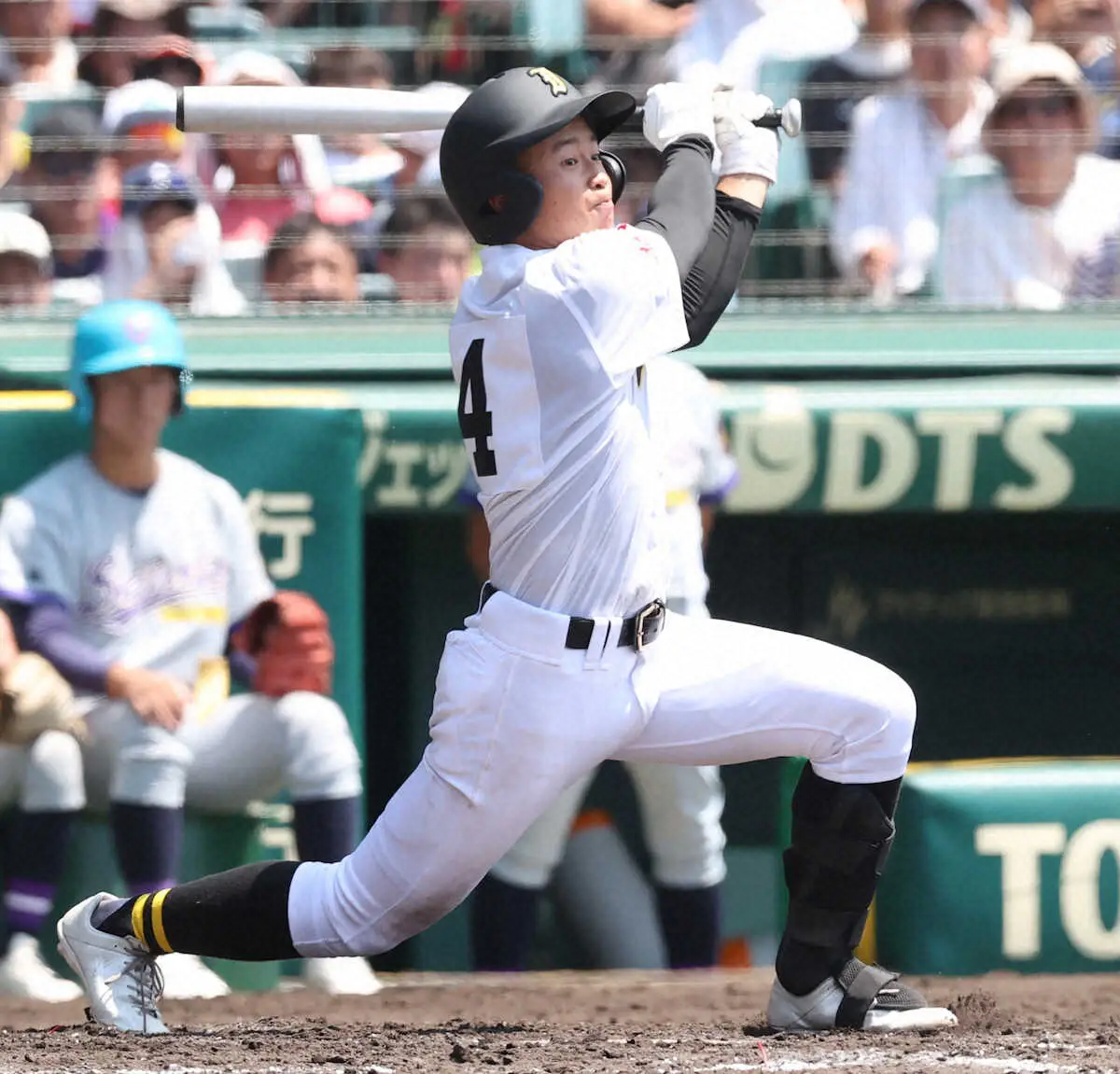 <聖和学園・石橋>4回1死満塁、右前に先制の2点適時打を放つ石橋・伊沢(撮影・北條 貴史)