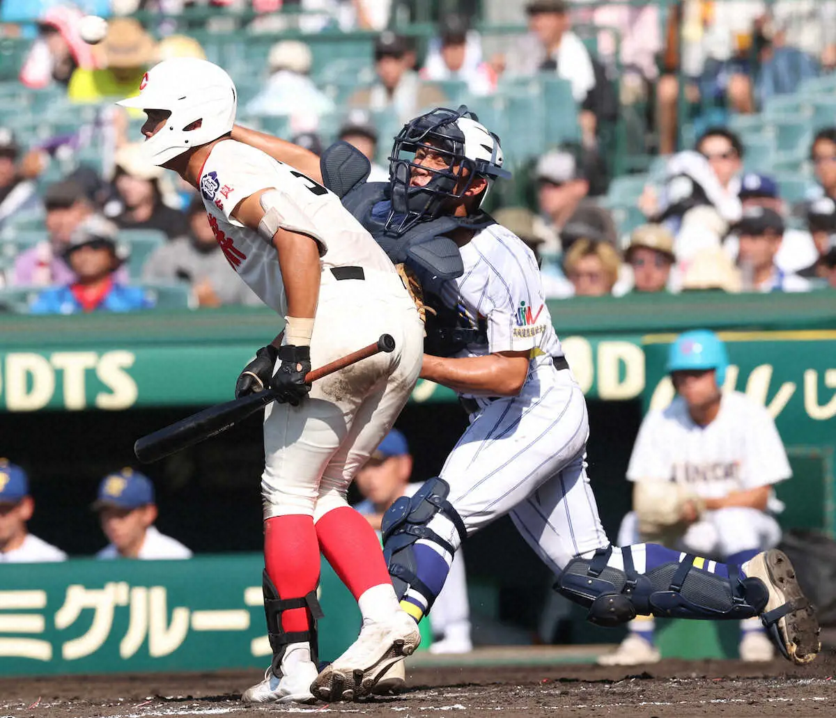 <健大高崎・智弁学園>9回1死一、二塁、智弁学園・田近のバントを素早く処理し、三封する健大高崎・箱山(撮影・北條 貴史) Photo by スポニチ 【甲子園】プロ注目捕手、健大高崎・箱山 悔し涙も“強肩3発”披露「ここに… ギャラリーで見る この記事のフォト 2024年08月14日の画像一覧 もっと見る 2024年08月14日の画像をもっと見る