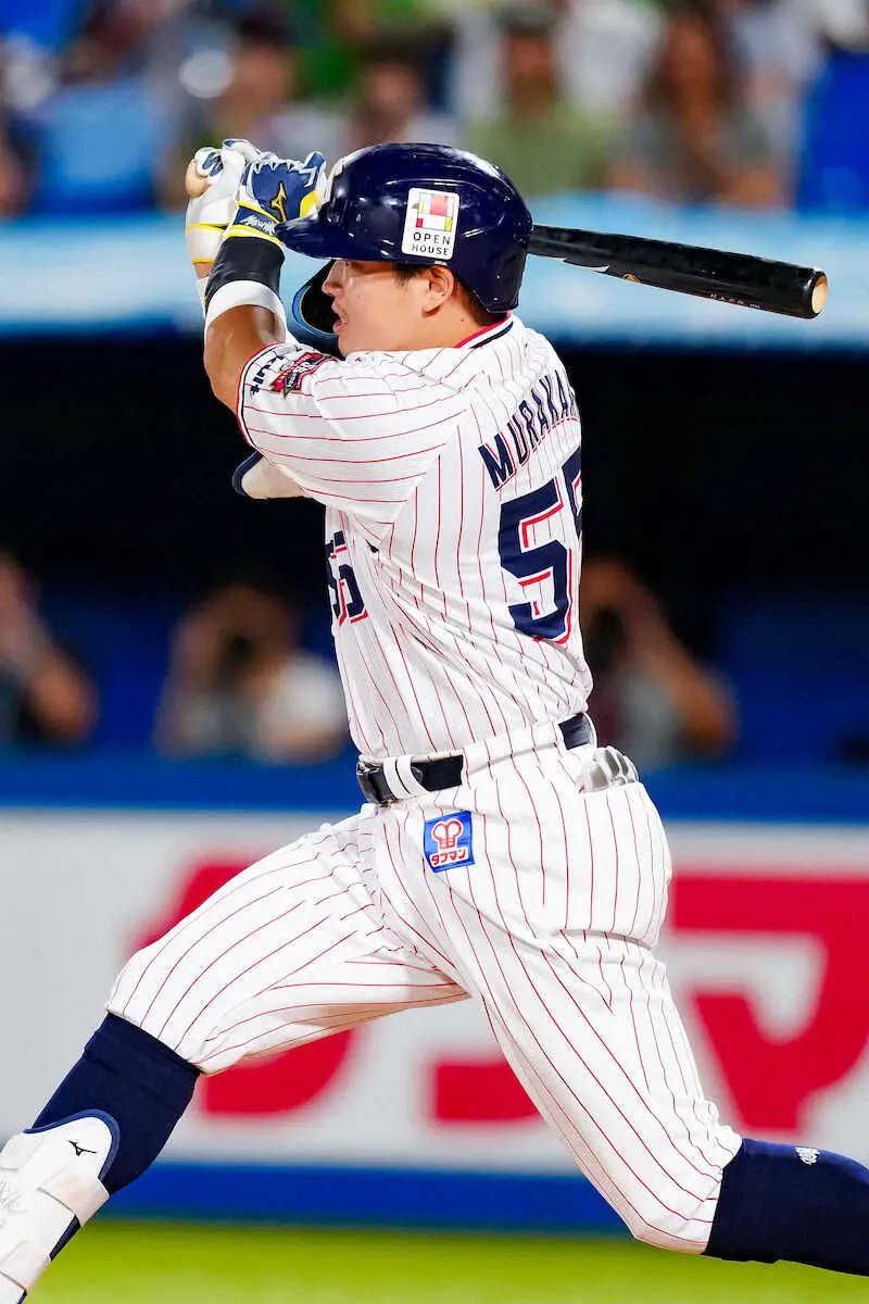 <ヤ・中>11回、サヨナラ打を放った村上(撮影・尾崎 有希) Photo by スポニチ ヤクルト・村上 ノーヒットから名誉挽回サヨナラ打 「壮真が死にそうな… ギャラリーで見る この記事のフォト 2024年08月14日の画像一覧 もっと見る 2024年08月14日の画像をもっと見る