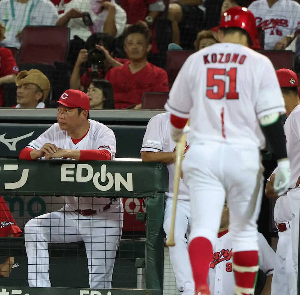9連戦中とあって野間を休養させ、「7番」で先発起用した前日12日の同戦で2安打1打点の活躍を見せた中村奨を22年6月8日楽天戦以来の「3番」に抜てき。期待通りチーム唯一の2安打で奮闘した。しかし「4番」と「5番」が不発。東に対しては試合前時点で今季17打数12安打で打率・706と好相性だった小園が沈黙した。全11球の直球攻めに対応することができず、3打席連続で左飛に倒れた。