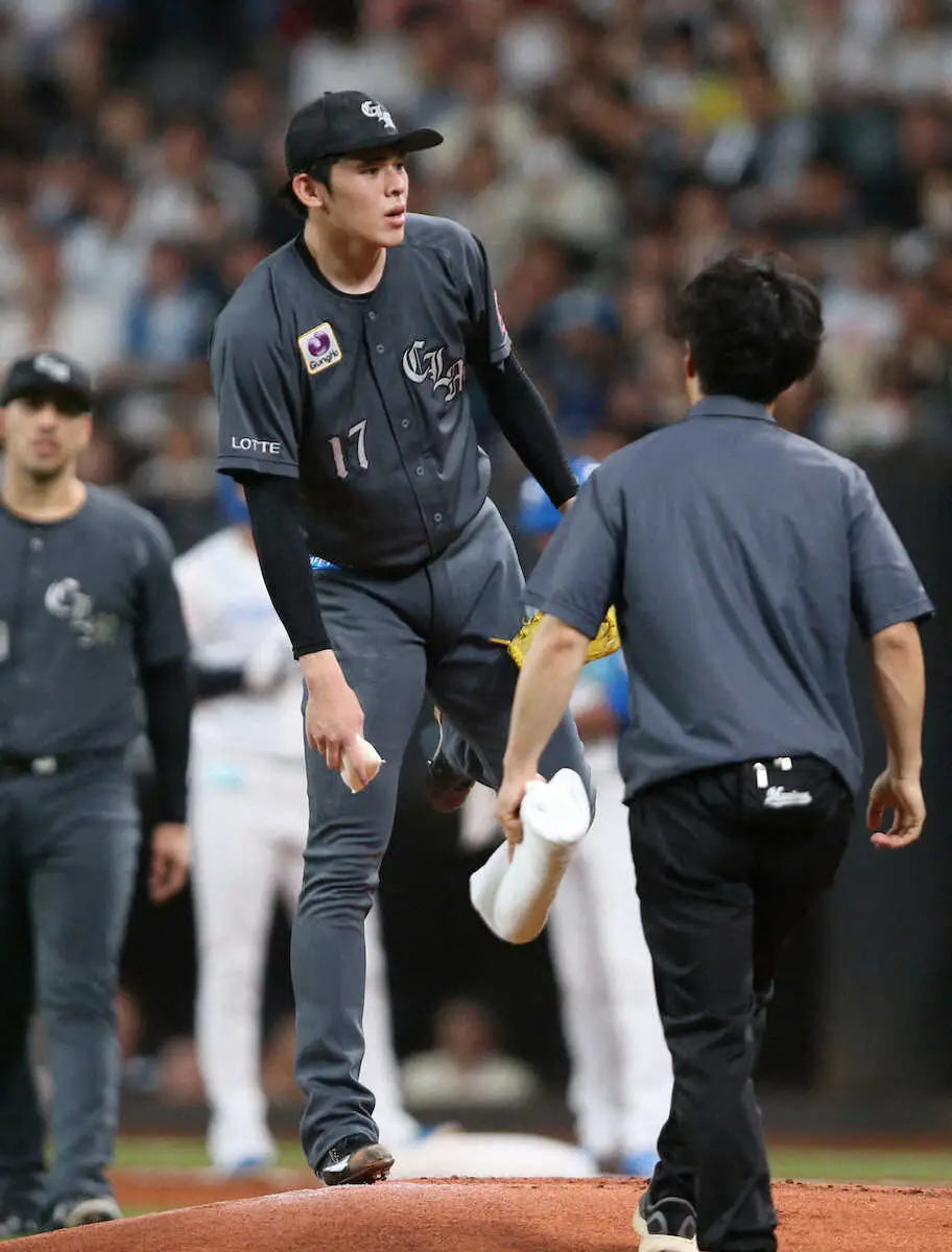 ロッテ・朗希 緊急降板の場面説明「いけそうだったけど…総合的な判断」 打球直撃は「アキレス腱の近く」