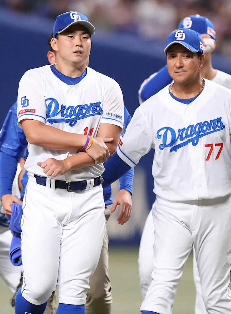 立浪監督は「投げられないこともなかったが、今後のことも考えて大事を取った」と説明。セットアッパーの松山が体調不良でベンチを外れたピンチも乗り越え、2回以降は5投手が1安打無失点に抑えた。今季は7月13日の阪神戦でも初回限りでの涌井の負傷降板を救援陣と打線がカバー。小笠原は試合後、軽症を示唆した上で「先発の仕事ができなくて申し訳ない。感謝しかない」と話した。
