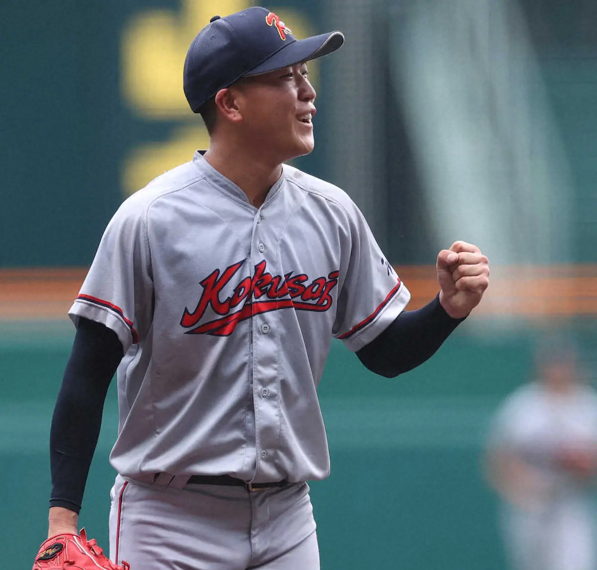 <西日本短大付・京都国際>完封勝利を挙げて笑顔を見せる京都国際・中崎(撮影・北條 貴史)
